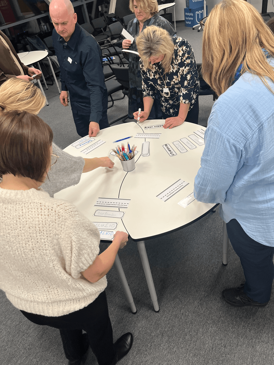 Praėjusią savaitę pabaigėme pirmąjį kvalifikacijos tobulinimo programos „Prakalbink mokyklos rajoną“ sezoną. 14 mokymų dalyvių su lektorių iš Vilniaus miesto muziejaus „Vokiečių 6“ ir urbanistikos agentūros „BLUMA“ pagalba plėtė savo žinias miesto tyrinėjimo temoje ir išbandė įvairius metodus, skirtus geresniam vietovių pažinimui ir jų prakalbinimui. Rieduliai, medžiai, gatvių, įmonių ir parduotuvių pavadinimai, miestiečiai, sakytinė istorija, miesto atmintis, žaliosios zonos, karščio salos, žaidimų aikštelės – visi šie ir dar daug kitų reiškinių pateko į tyrimų akiratį.